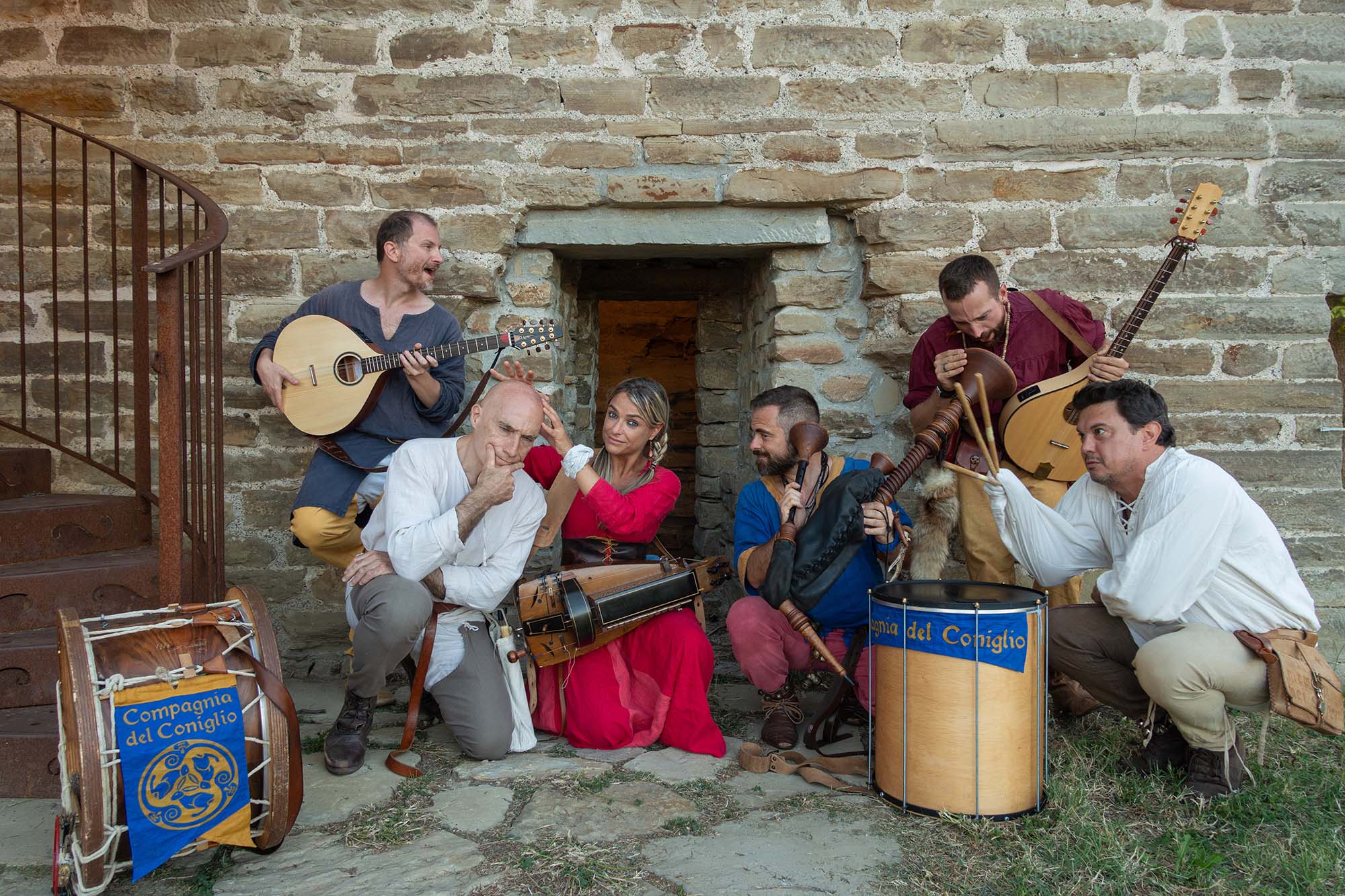 La Compagnia del Coniglio propose un voyage musical à travers le Moyen Âge et la tradition folklorique européenne, offrant sur scène des spectacles itinérants et des concerts à l'impact visuel et émotionnel puissant. Le répertoire du groupe combine mélodies médiévales, danses traditionnelles et sonorités celtiques, interprétées à travers une riche palette d'instruments historiques et folkloriques tels que cornemuses, instruments à cordes, percussions et autres instruments traditionnels. Actif dans les festivals historiques, les reconstitutions médiévales et les événements culturels en Italie et à l'étranger, la Compagnia del Coniglio est reconnue pour sa capacité à créer des atmosphères captivantes et immersives, transformant chaque espace en une expérience vivante et participative.