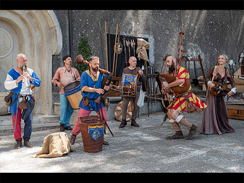 La Compagnia del Coniglio est un ensemble de musique folklorique médiévale et celtique qui anime festivals et reconstitutions historiques grâce à des spectacles itinérants captivants mettant en vedette cornemuses, percussions et instruments à cordes.